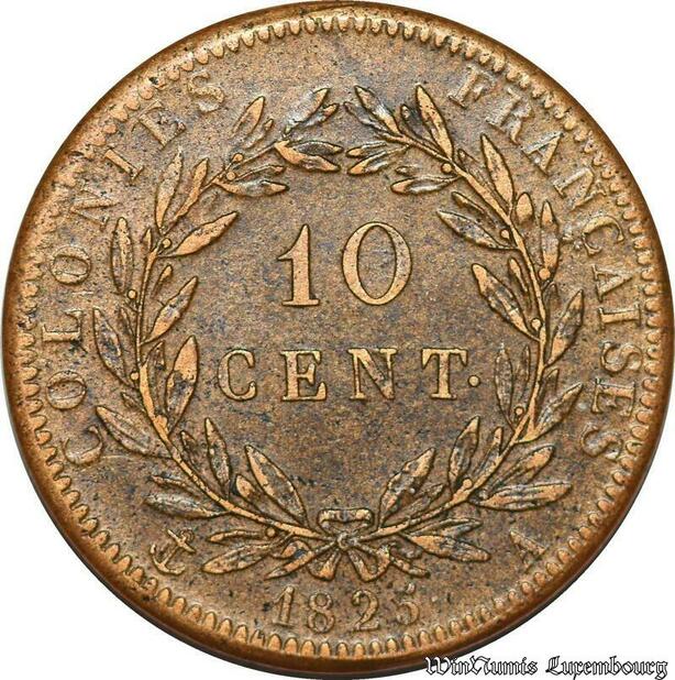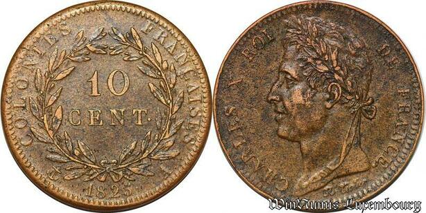 S7357 Rare Colonies Guyane et Sénégal 10 Centimes Charles X 1825 AU superbe