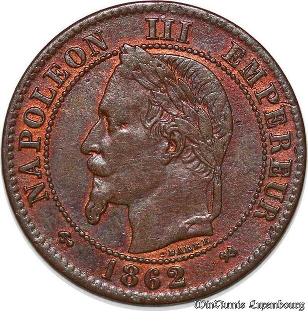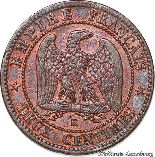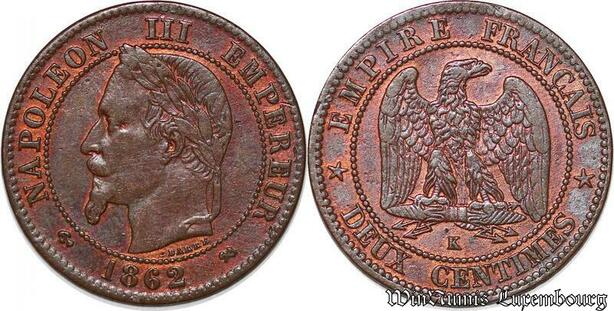 S7370 2 Centimes Napoléon I 1862 K Bordeaux Red Rouge d'origine >Faire Offre