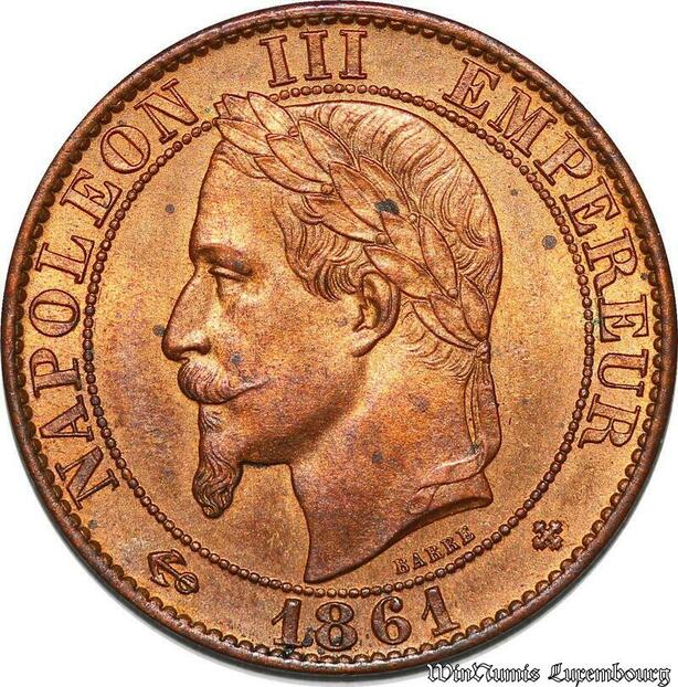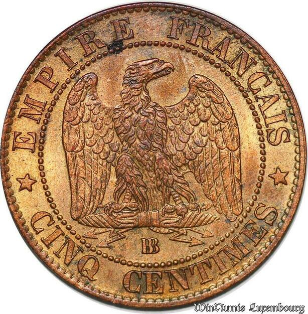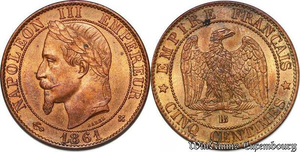 S7376 Rare ! 5 Centimes Napoléon I 1861 BB Splendide ->Faire Offre