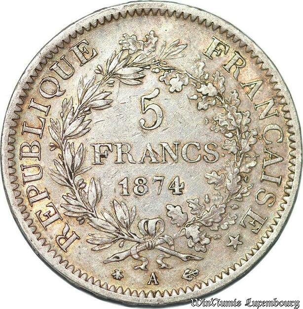 S7395 5 Francs Hercule 1874 A Paris Argent Silver ->Faire Offre