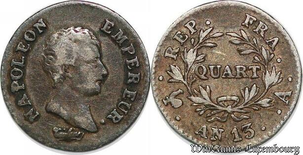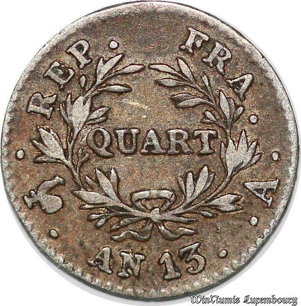 S7431 Rare 1/4 Franc Napoléon Empereur an 13 A Paris ->Faire Offre