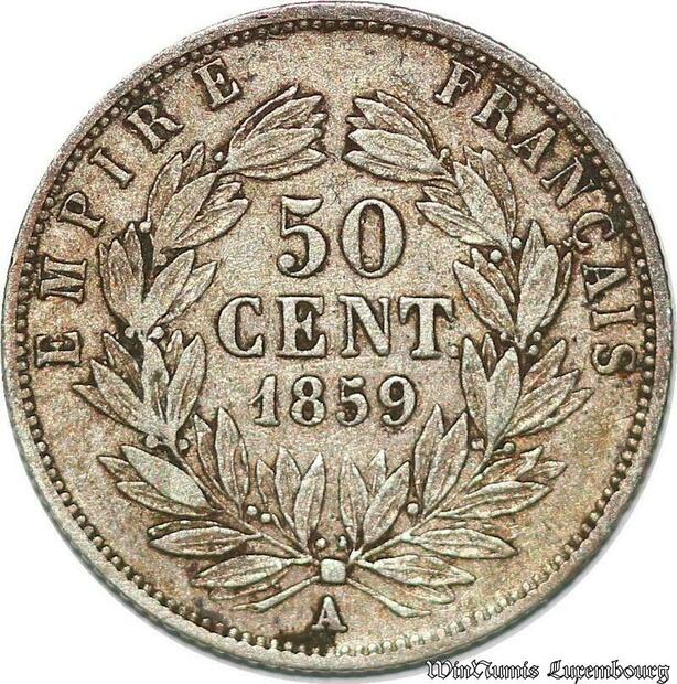 S7432 50 Centimes Napoléon I 1859 A Paris Argent Silver ->Faire Offre