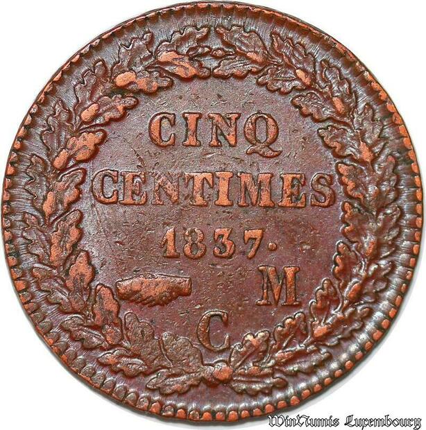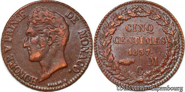 S7442 Monaco Principauté 5 Centimes Honoré V 1837 Lustre ->Faire Offre