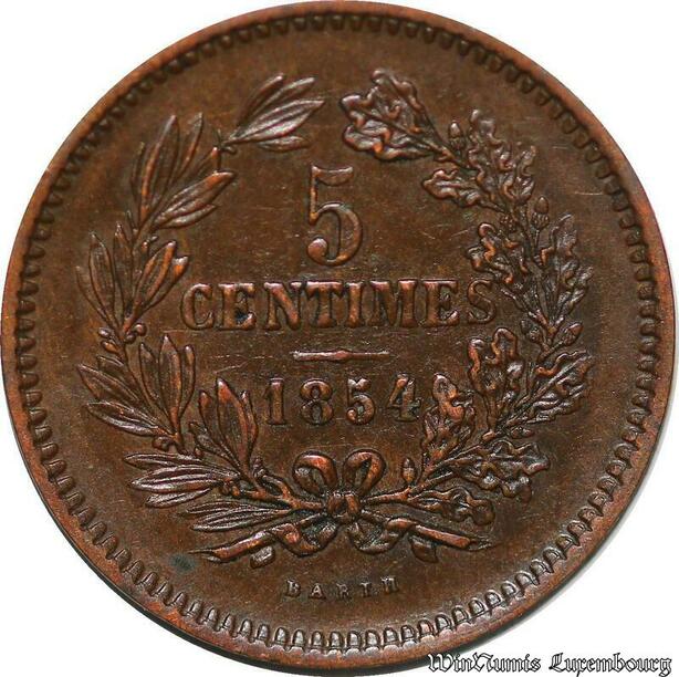 S7489 Luxembourg Willem III 1849-1890 5 Centimes 1855 A Paris AU