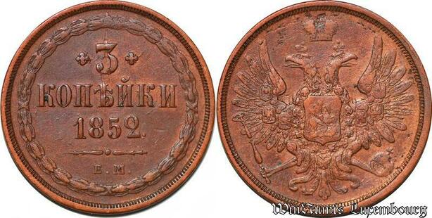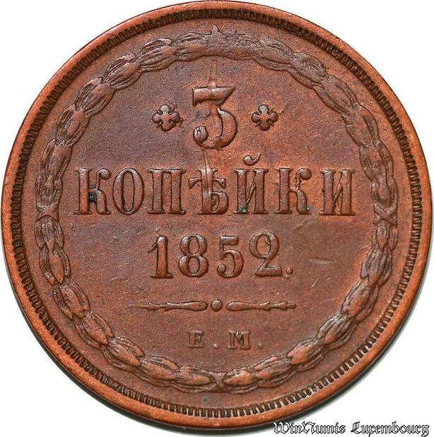 S7514 Russia 3 Kopeks Nicholas I Copper 1852 EM Ekaterinburg VF ->Make offer