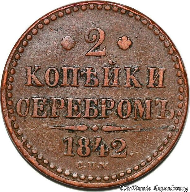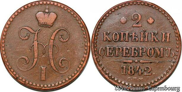 S7517 Russia 2 kopecks Nicholas I 1842 CПM Izhora mint Bitkin-821