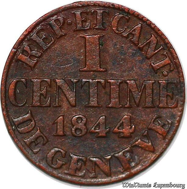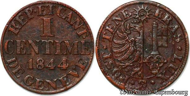 S7530 Swiss Cantons Suisse1 Centime 1844 Geneve superbe ->Faire Offre