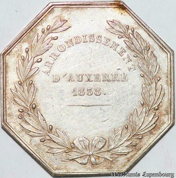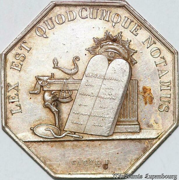 S7555 Jeton Octogonal Lex Est Quodcumque Notamus Argent Caqué Auxee 1838