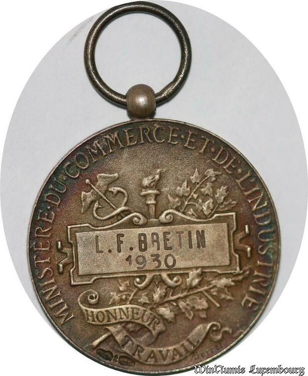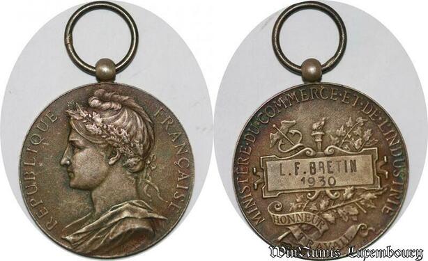 S7564 Médaille Ministère du CommerceIndustrie Bretin 1930 Boel Silvered