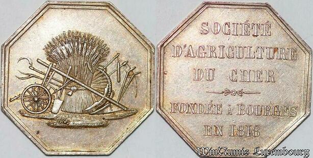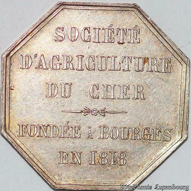 S7574 Jeton Octogonal Société D'Agriculture Cher Bourges 1818 Argent