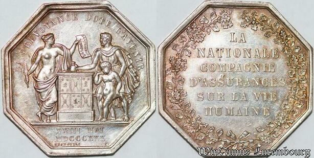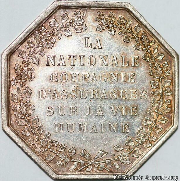 S7578 Jeton La Nationale Compagnie d'Assurance vie humaine 1830 Argent SUP