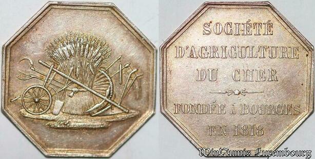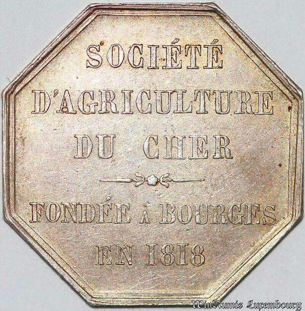S7581 Jeton Octogonal Société D'Agriculture Cher Bourges 1818 Argent