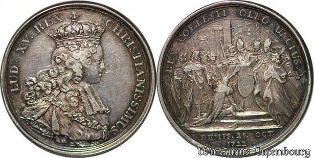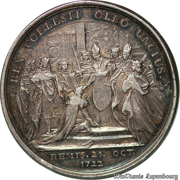 S7587 Rare ! Champagne Louis XV Jeton du sacre 25 octobre 1722 Argent superbe