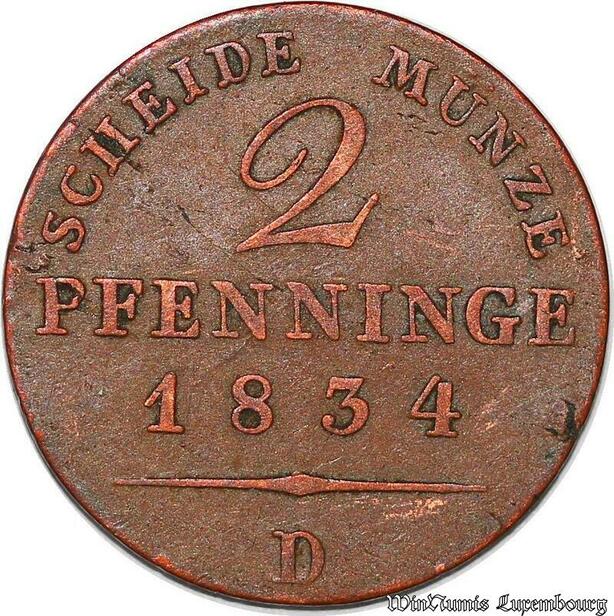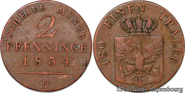 S7601 German States 2 Pfennig 1834 D Brandenburg-Preußen Friedrich Wilhelm III