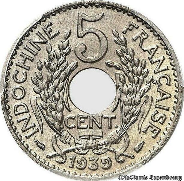 S7685 Rare French Indo China 5 Cents Marianne 1939 PCGS MS67 Maillechort->Faire Offre