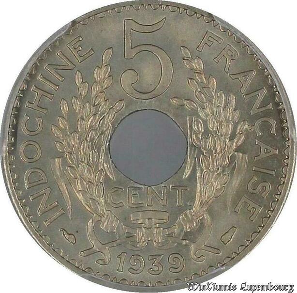 S7687 Rare French Indo China 5 Cents Marianne 1939 PCGS MS66 ->Faire Offre