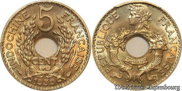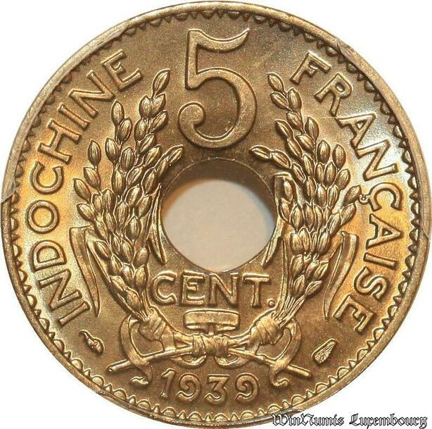 S7689 Rare French Indo China 5 Cents Marianne 1939 PCGS MS68 ->Faire Offre