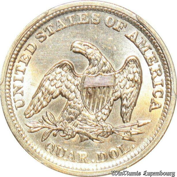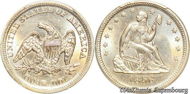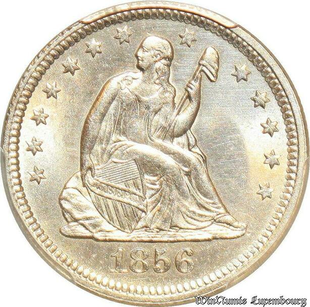 S7693 Rare USA 25 Cents Liberty Seated Quarter 1856 PCGS UNC ! Silver
