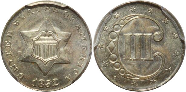 S7704 Rare USA United States 3 Cents 1852 Philadelphia Silver UNC ->Make offer