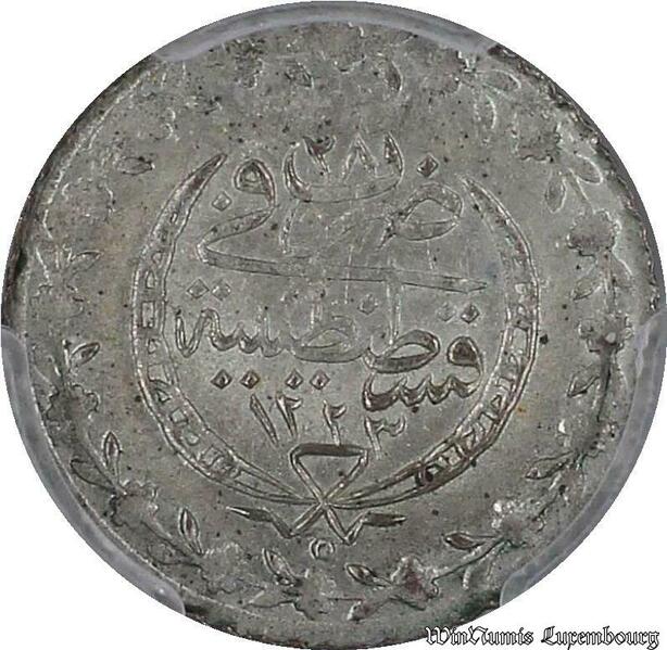 S7752 Rare Turkey 20 Para 1223 AH1223 /28 PCGS MS64 Silver ->Make offer