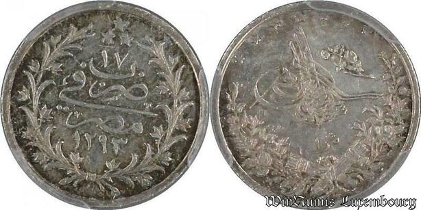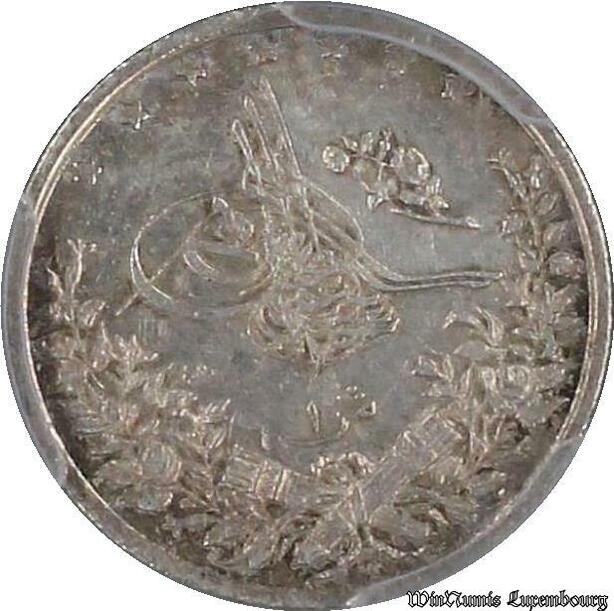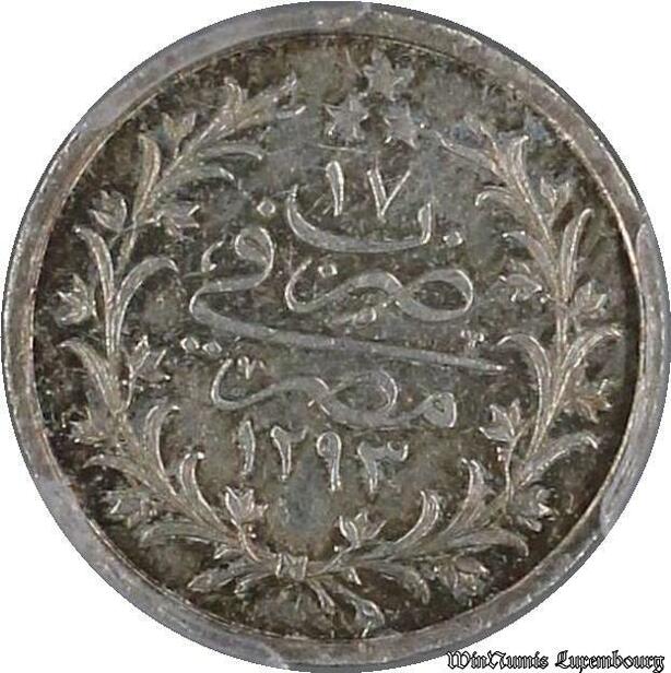 S7753 Rare Egypt 5 Qirsh Abdul Hamid II AH 1293 /17 1892 W Berlin Silver NGC MS61