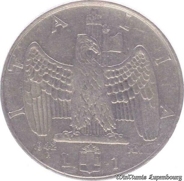 S7772 ltalie 1 Lire Aigle aux Faisseaux Vittorio Emanuele III 1942 superbe