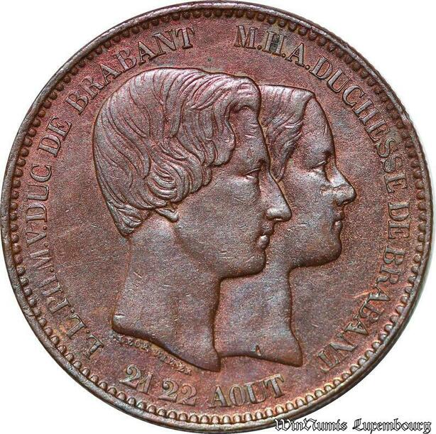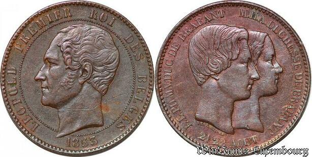 S7795 Belgium 10 Centimes Léopold I Maiage of the Duke of Brabant) 1853 AU