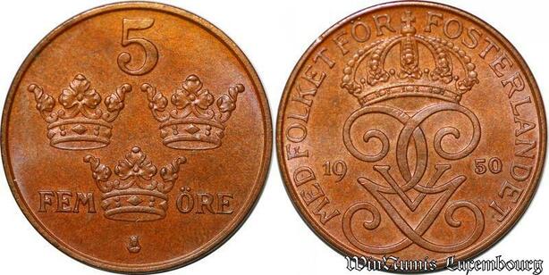 S7847 Suède Sweden 5 Öre Gustave V 1950 FDC ! -> Make Offer