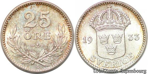 S7854 Suède Sweden 25 Öre Gustave V 1933 FDC ! Silver -> Make Offer