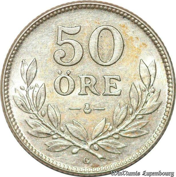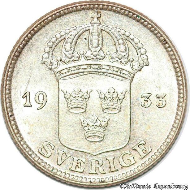 S7857 Suède Sweden 50 Öre Gustave V 1933 AU Silver -> Make Offer