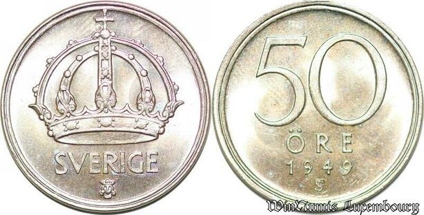 S7859 Suède Sweden 50 Öre Gustave V 1949 FDC ! Lustre Argent-> Make Offer