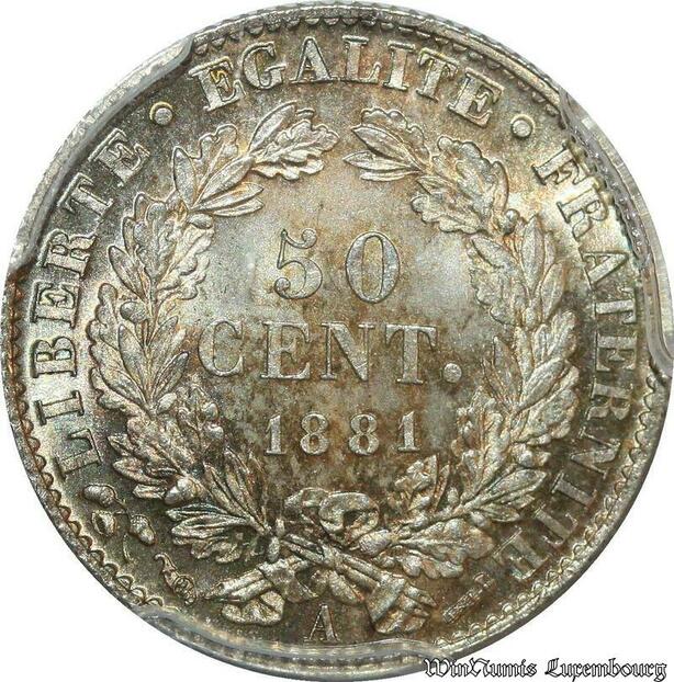S7893 Rare 50 Centimes 1881 A Paris PCGS MS64 Argent Silver FDC -> Faire Offre