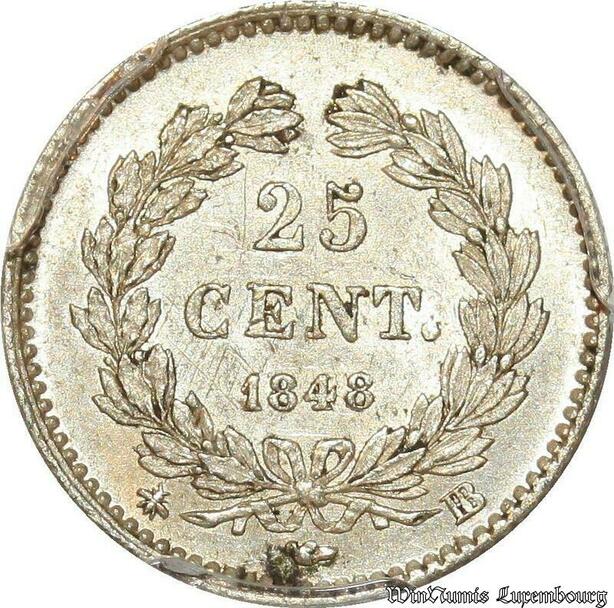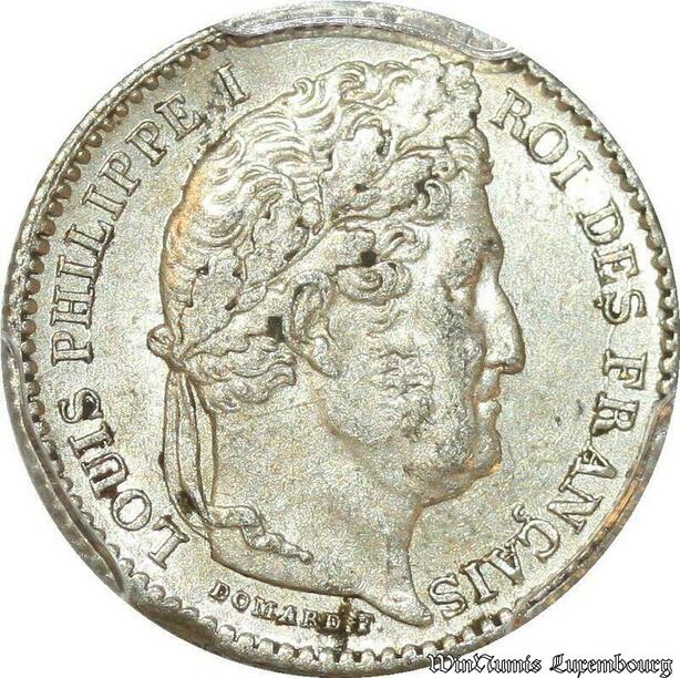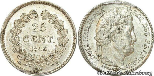 S7899 Très Rare 25 Centimes Louis-Philippe I 1848 BB Strasbourg Argent PCGS MS62