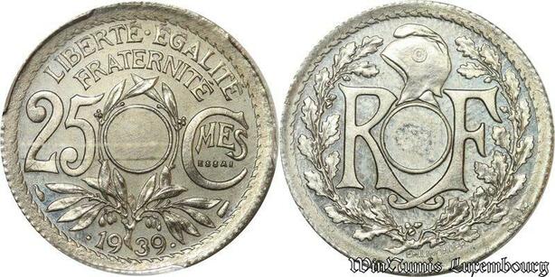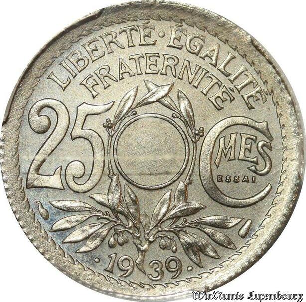 S7901 Rarissime 25 Centimes Essai 1939 non perforé PCGS SP63 FinestSPL