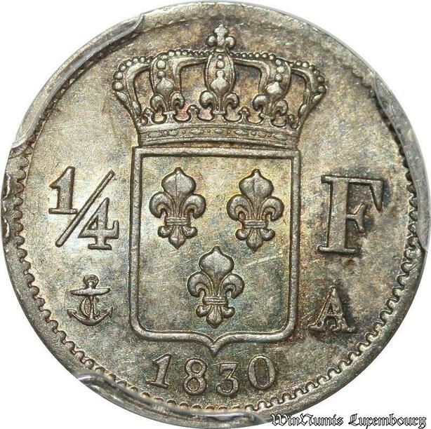 S7904 Rare 1/4 Franc Charles X 1830 A Paris PCGS MS64 Argent Silver