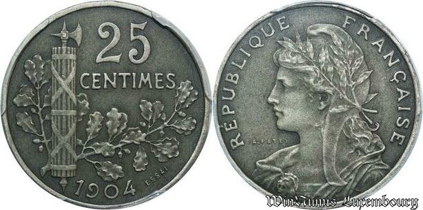 S7906 Rarissime 25 Centimes Essai Patey 1904 PCGS SP66 Argent Silver Matte FDC
