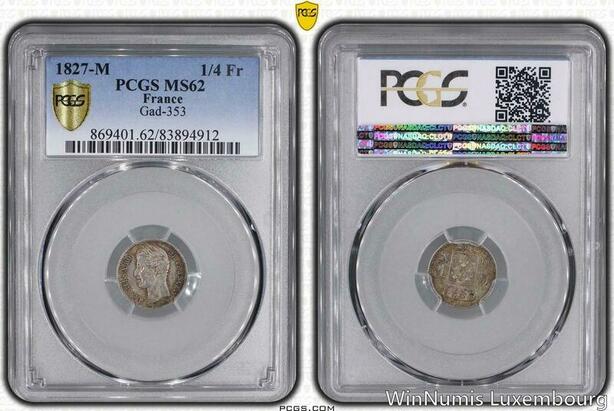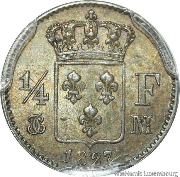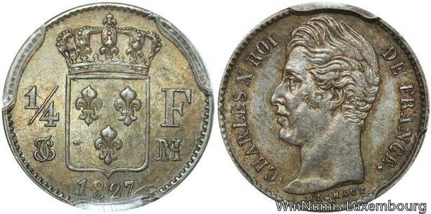 S7909 Rare 1/4 Franc Charles X 1827 M Toulouse Silver PCGS MS62 UNC