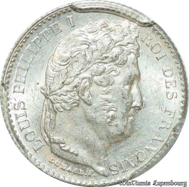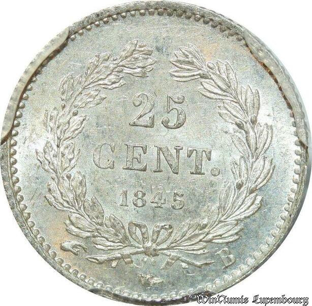 S7910 Rare 25 Centimes Louis Philippe I 1845 B Rouen PCGS MS64 Argent FDC