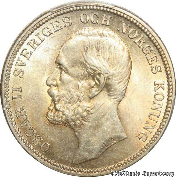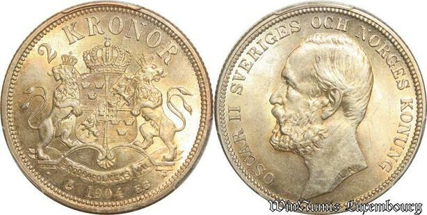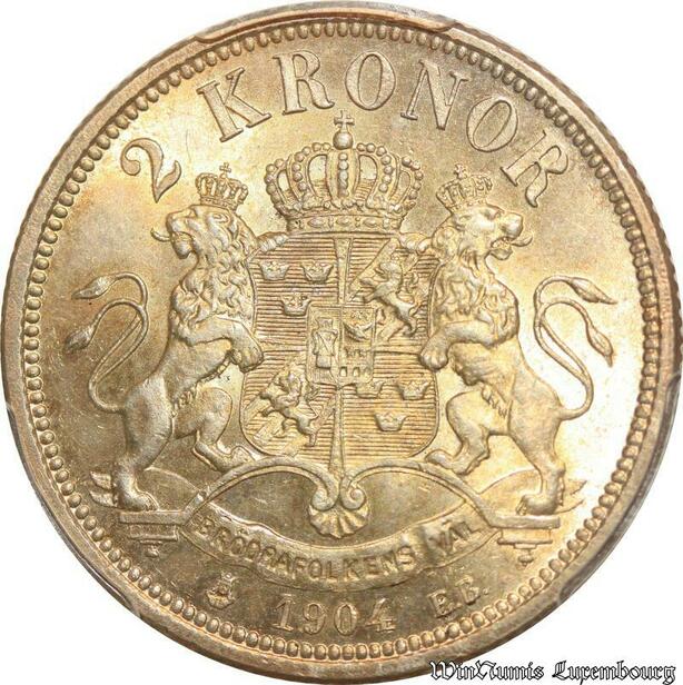 S7942 Sweden Rare 2 Kronor Oscar I II 1904 EB PCGS MS63 SPL Silver