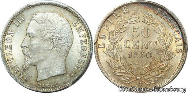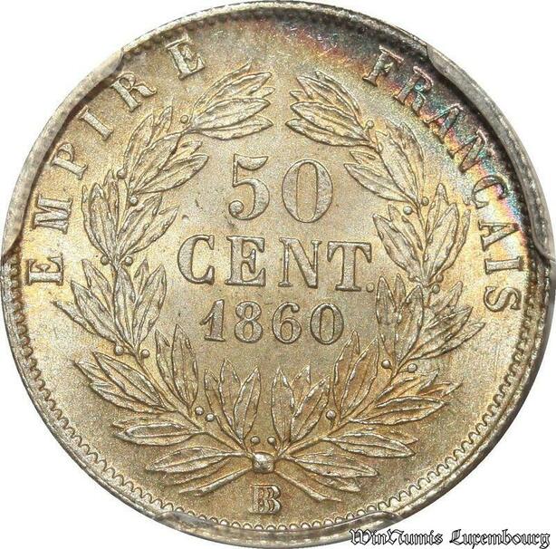 S7954 Rare ! 50 Centimes Napoléon I 1860 BB Strasbourg PCGS MS63 SPL