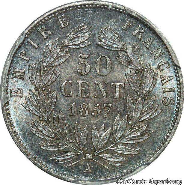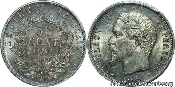 S7961 Rare 50 Centimes Napoléon I 1857 A PCGS MS63 Splendide ->Faire Offre