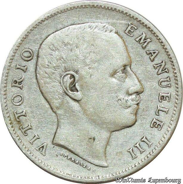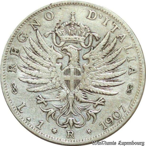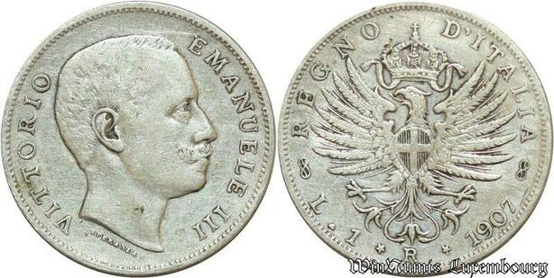 S2006 Italia Une Lira Lire Vittorio Emanuel III 1907 Argent Silver