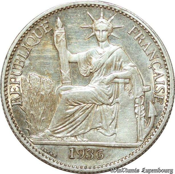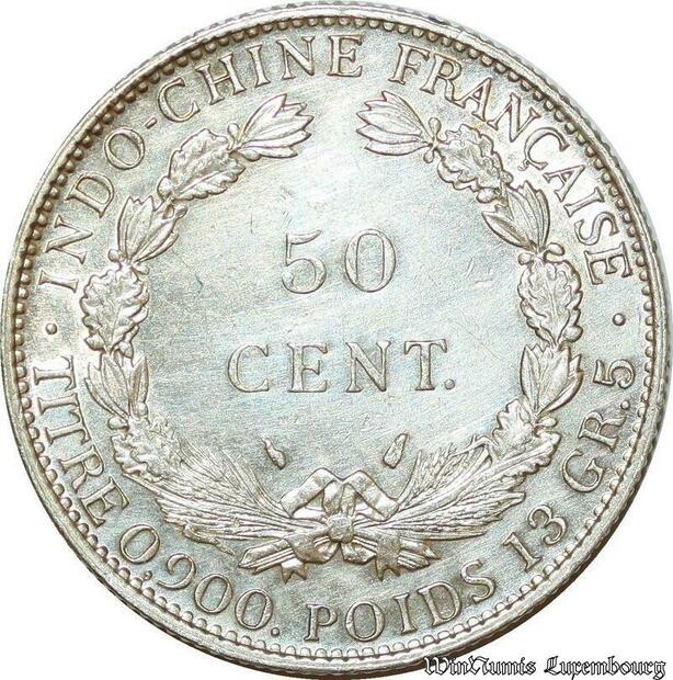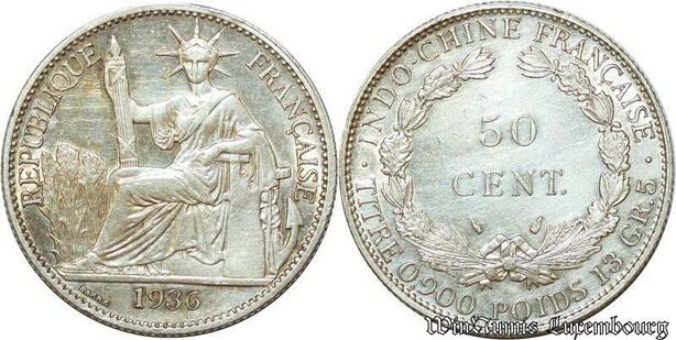 S2020 Rare French Indochina 50 Cents 0,900 Poids 1936 Silver SPL