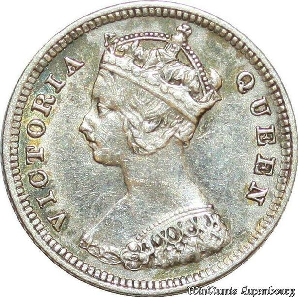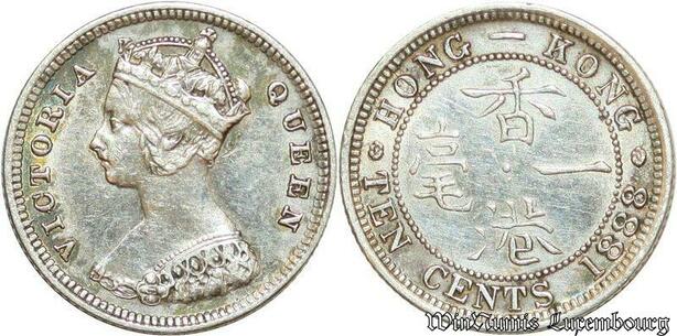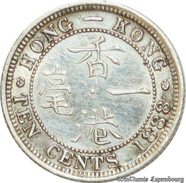 S2026 Rare Hong Kong 10 Cents Victoria 1888 Argent Silver AU! UNC