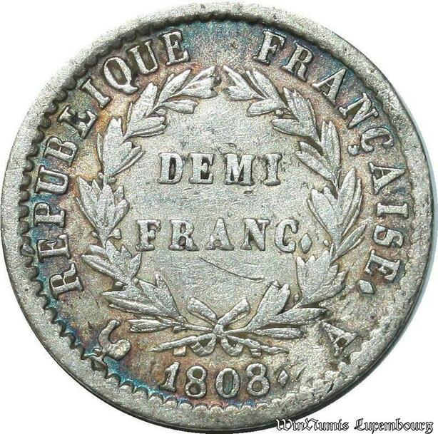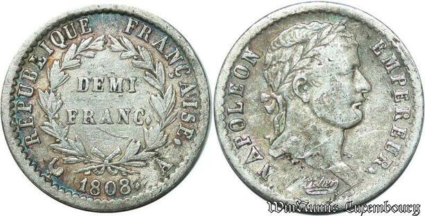 S2028 Rare France 1/2 Franc Napoléon 1808 A Paris Argent Silver - Faire Offre