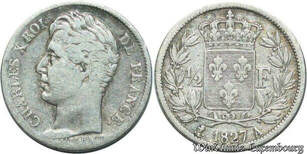 S2030 Rare France 1/2 Franc Charles X 1827 A Paris Argent Silver - Faire Offre