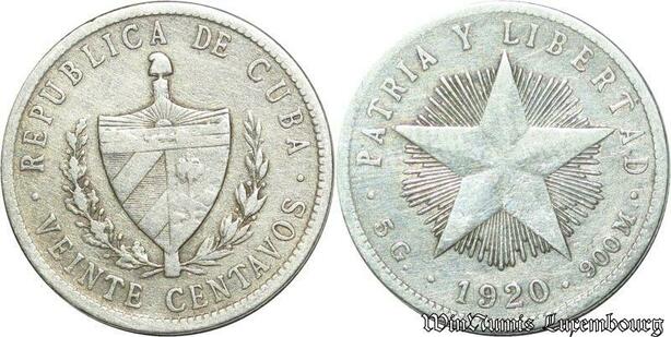 S2048 Cuba 20 Centavos 1920 Silver -> Make offer