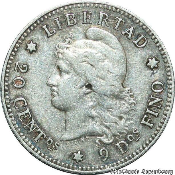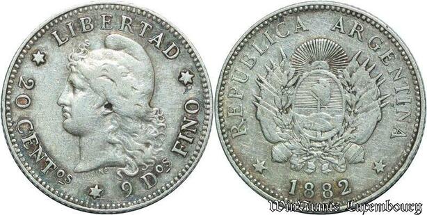 S2049 Argentina 20 Centavos Libertad 1882 Silver ->Make offer