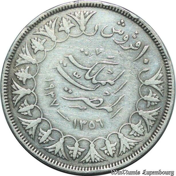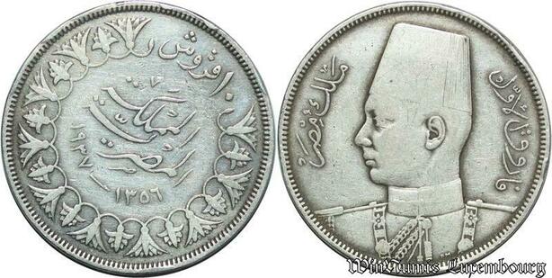 S2068 Egypt 10 Piastres Farouk AH 1356 1937 Argent Silver ->Faire Offre