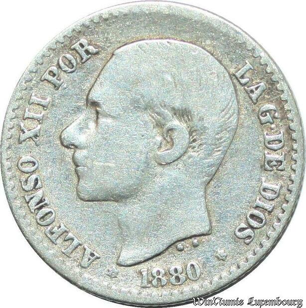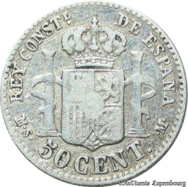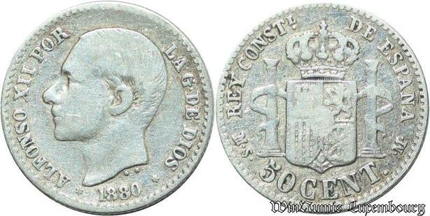 S2072 Espagne 50 Centimes Alphonse XII 1880 MS-M Plata Silver ->Faire Offre